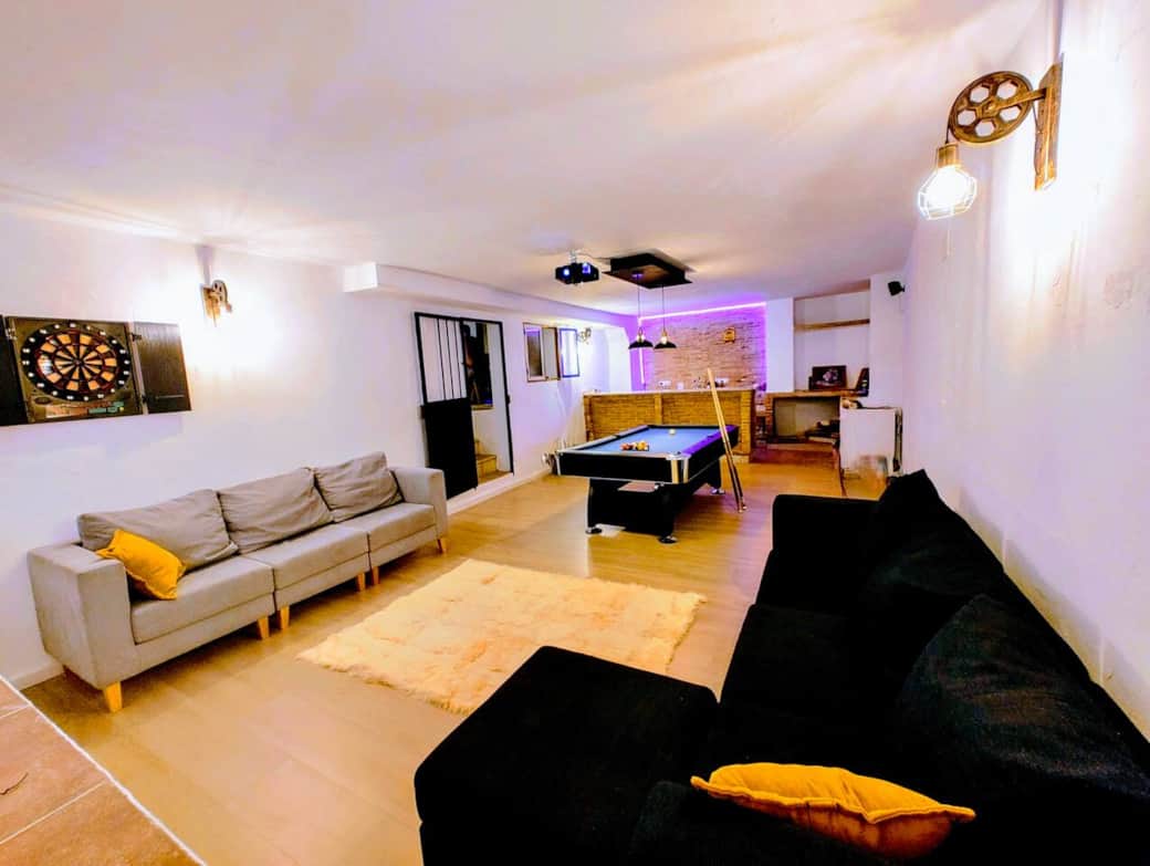 Ideal para grupos y familias en un pueblo tranquilo: dos casas unidas que comparten patios, dos piscinas y una sala de ocio equipada con billar, proyector de cine, dardos y máquina arcade. Disfruta de barbacoas y cenas al aire libre en el patio, o relájate en las piscinas. Perfecto para desconectar y divertirse juntos, con espacio y entretenimiento para todas las edades. Vive una experiencia única y crea recuerdos inolvidables.